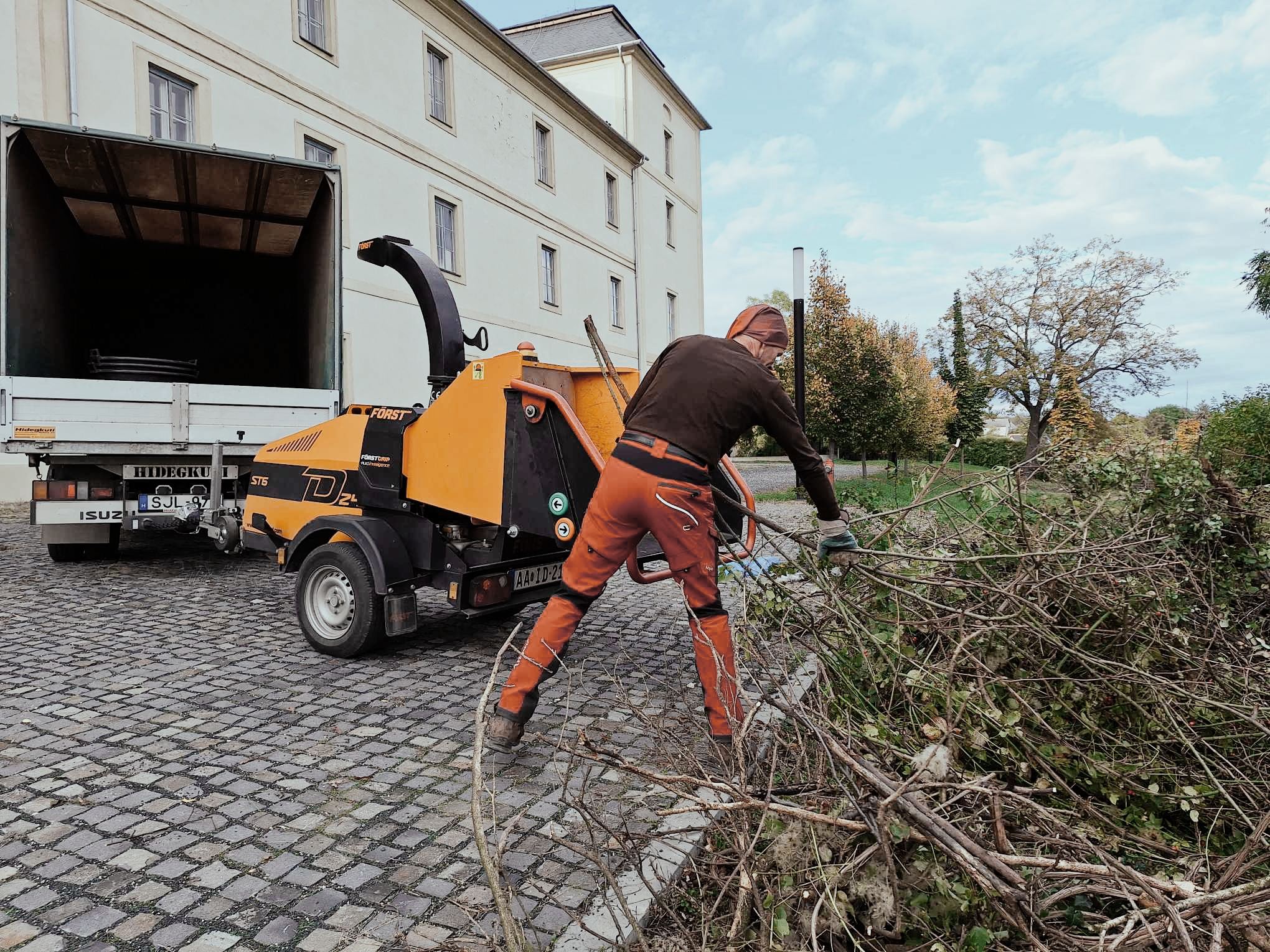 A viharos idő és a ház közelsége miatt kivágásra ítéltük az óriásira nőtt tujánkat. Az egész művelet a darálással együtt egy órát vett igénybe. Köszönjük a gyors és szakszerű munkát!